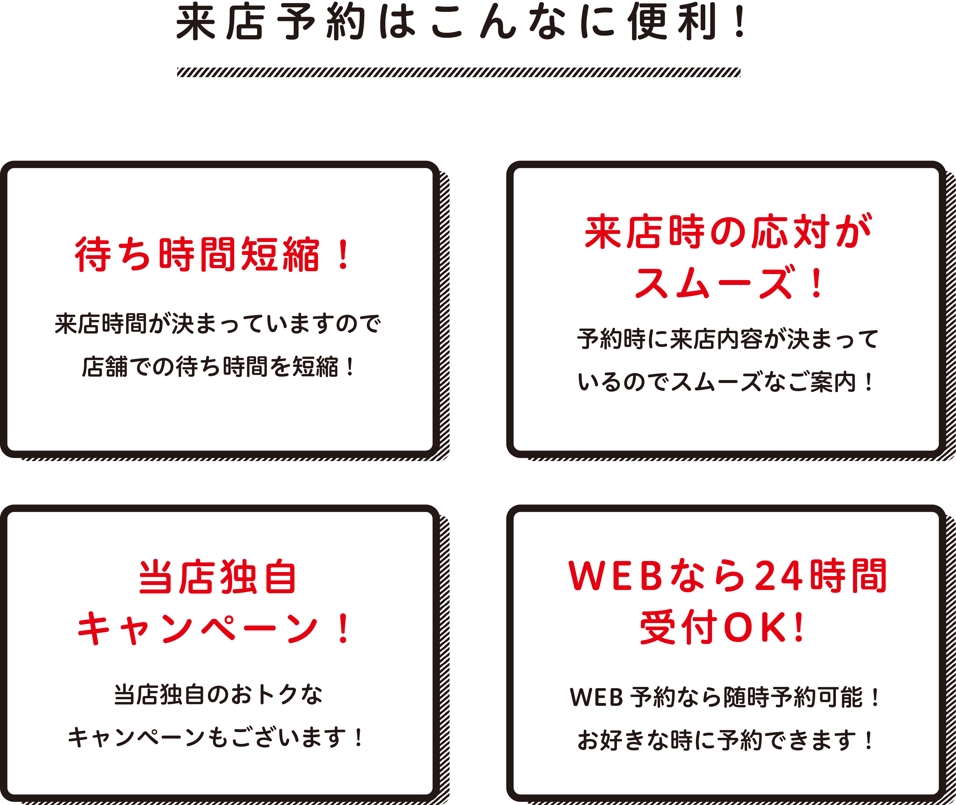 WEBからの来店予約には「メールアドレス」が必要になります。 メールアドレスが不明な方はお電話でご予約下さい!